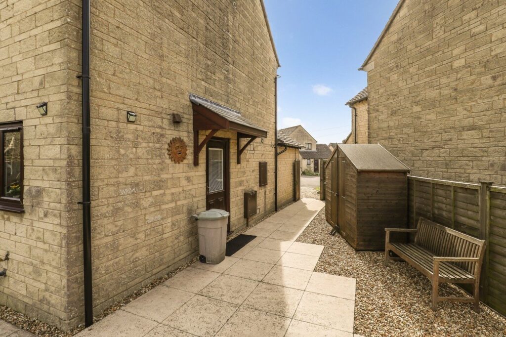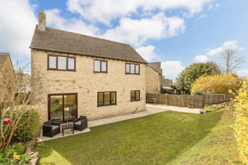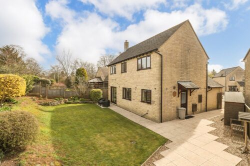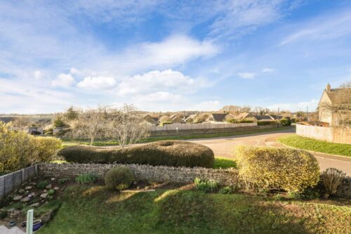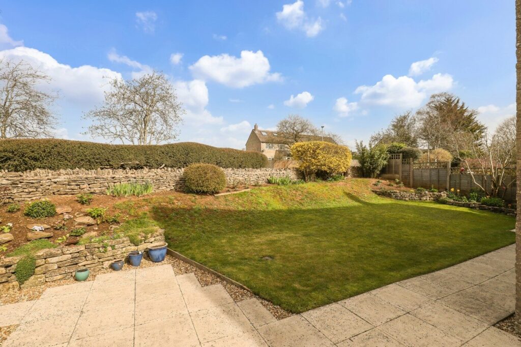 An open-plan front garden, laid to lawn with wellstocked flower borders, extends to the front of the house. A gravelled driveway provides easy parking for two cars and leads to the integrated store (formerly a garage) with garage door and utility area. There is an EV charging point at the side of the garage. The rear garden is securely fenced and gated, making it ideal for children and dogs. Extending behind the house and wrapping around the side of the kitchen, the garden is bounded by a combination of attractive Cotswold stone walling and fencing. It incorporates an extensive lawn, paved entertaining areas, and well-stocked borders.