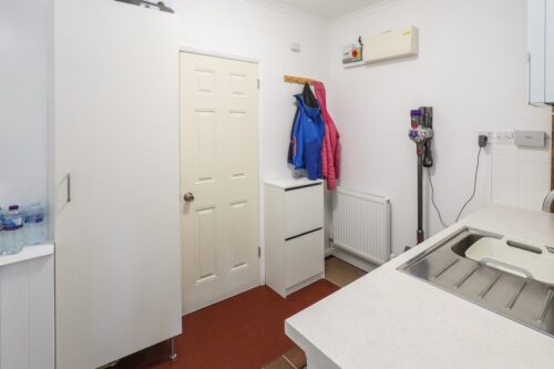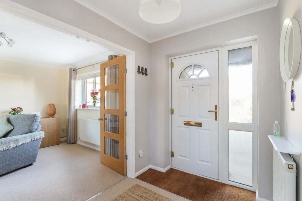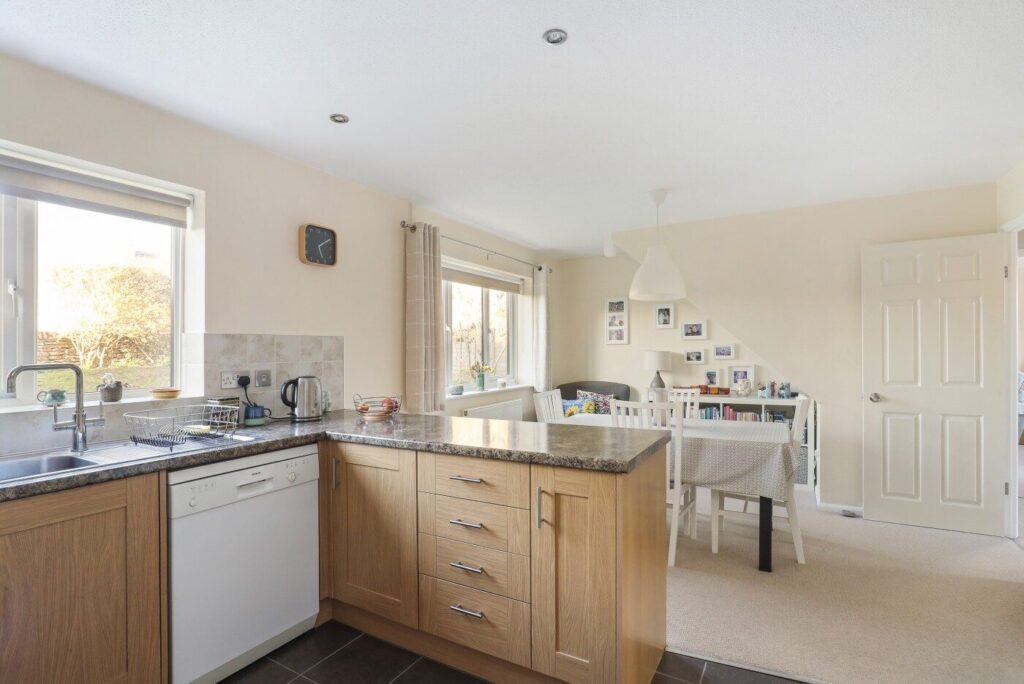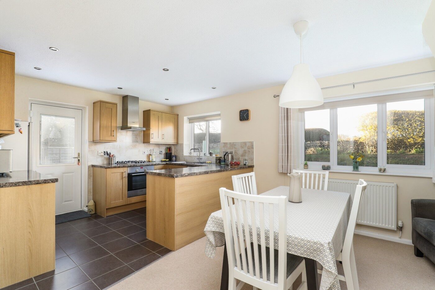 A well-presented four-bedroom detached family home, occupying a desirable cul-de-sac setting and benefiting from a private rear garden with an open aspect. Neutrally decorated throughout, this bright home has been lovingly maintained and updated by the current owners. Set back from the cul-de-sac with an open-plan front garden, the property is approached via a paved, canopied entrance, providing both a sheltered seating area and a practical space for removing boots. This leads into a well-proportioned entrance hall, with stairs rising to the first floor and glazed oak French doors opening into the sitting room. Further doors provide access to a downstairs cloakroom and the kitchen/dining room. The sitting room spans the depth of the house, with a large window to the front elevation and patio doors to the rear, allowing for excellent natural light. An attractive stone fireplace with an inset electric fire forms a focal point. To the rear, the kitchen/dining room is well-proportioned and enjoys views over the garden, with a door providing direct access outside. The kitchen has been remodelled by the current owners and features a peninsula with additional storage, a range of wall and base units, an integrated oven and hob, and space for a dishwasher. An internal door leads to the integral former garage/store, which also incorporates a utility area. Upstairs, the first-floor landing, with airing cupboard, provides access to all four bedrooms and the family bathroom. Two bedrooms are positioned to the front, enjoying a pleasant outlook over the garden and no-through culde-sac, while the remaining two overlook the rear garden. The modern family bathroom is fitted with a white suite, including a shower over the bath and a heated towel rail. The boiler was replaced in October 2020. Covenants detailed within the title from when the house was built are available upon request.