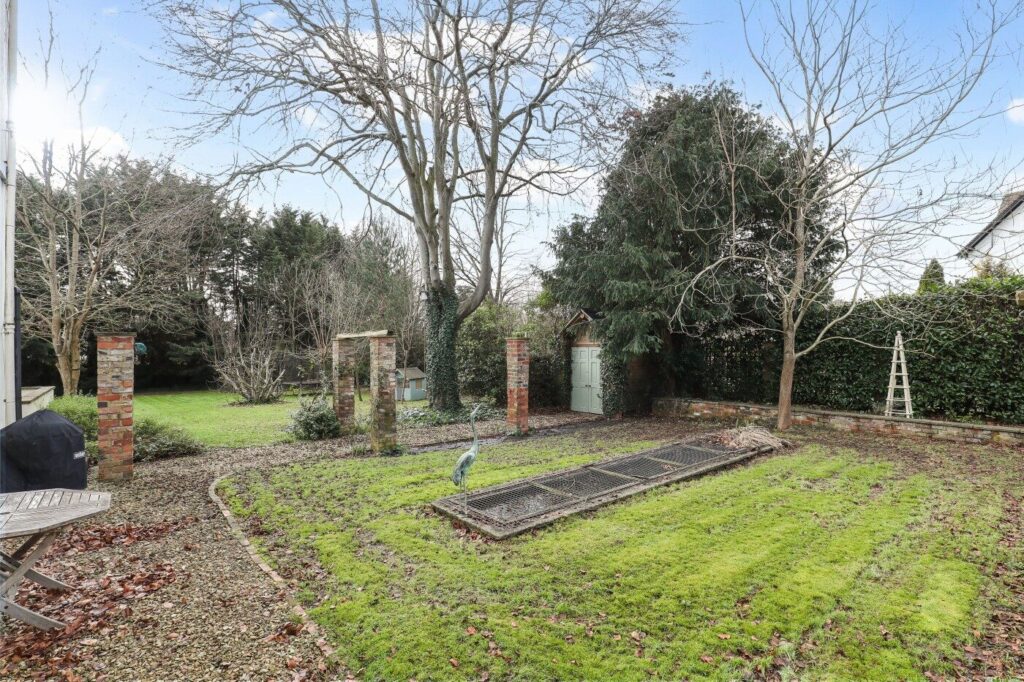 Set within gardens and grounds extending to approximately 0.6 acres, the property is approached via a shared driveway, which falls within the title ownership of Berryfields House. The gardens extend to either side of the property, providing level lawns ideal for children to play, along with excellent scope for the keen gardener. A raised terrace with paved and gravelled seating areas and a pergola, together with a gravelled garden and well-stocked flower beds, enjoys a beautiful backdrop of an old red-brick wall and a southerly aspect, making it an ideal space for outdoor dining and entertaining. A woodstore is conveniently located close to both the boot room and the main entrance. Further landscaped gardens extend along the eastern elevation and incorporate additional lawn and a classic rectangular pond, reflecting traditional Georgian design. A raised paved and partially canopied seating terrace immediately adjoins the southern elevation of the house and offers a fabulous outlook across the grounds. A tarmac driveway leads to a double garage, which adjoins the neighbouring property, The Coach House (also available for sale by separate negotiation). The garages, combined with the private driveway, provide ample parking and turning space. The garden is enclosed by a combination of walling, hedging, and fencing, and is dotted with mature trees, plants, and shrubs, offering year-round interest and colour.