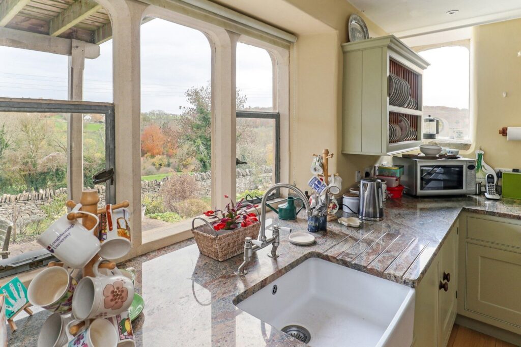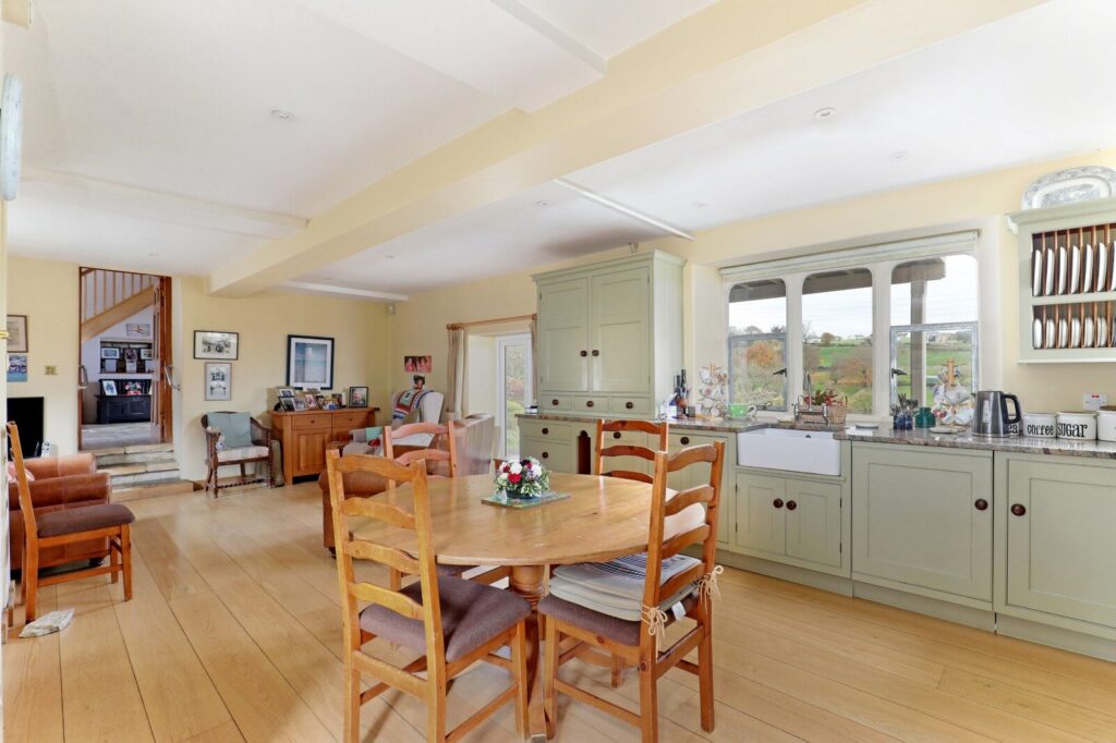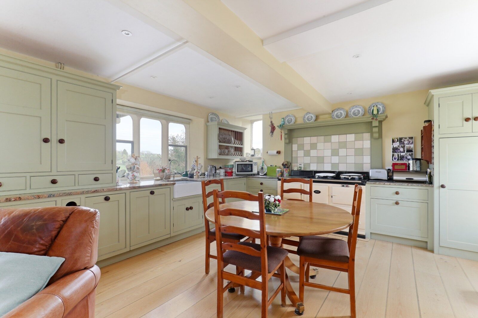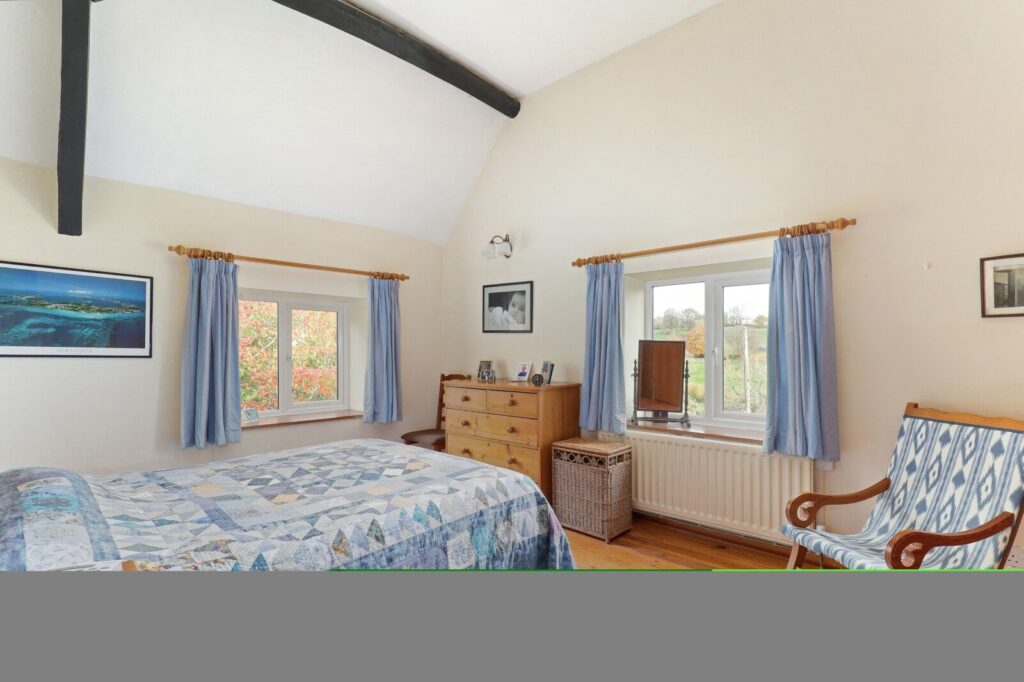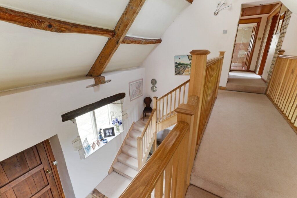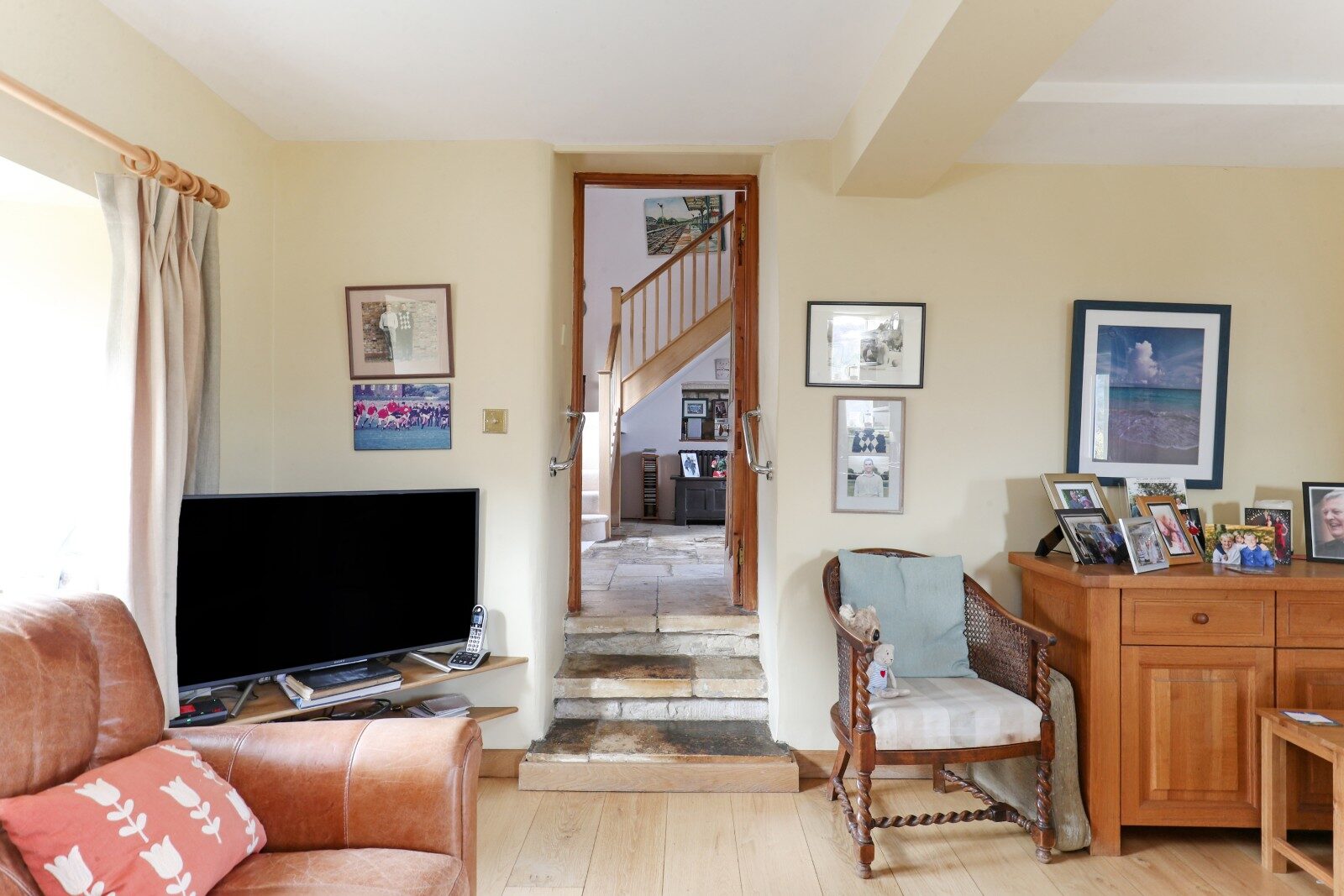 Nestled in a tranquil setting below the historic market town of Minchinhampton and within easy reach of the vibrant market town of Nailsworth, this detached Cotswold stone residence beautifully combines charm, character, and captivating countryside views. Originally serving as the stables and barns to a local country house, the property was sympathetically converted in the 1970s into a delightful home that retains a wealth of character features, including stone mullioned windows, flagstone floors, exposed timbers, high ceilings and wooden floorboards. The accommodation is both flexible and thoughtfully arranged to make the most of the wonderful outlook, with the principal living areas enjoying the views. You enter directly into an impressive and welcoming reception hall, featuring a vaulted ceiling, oak staircase with minstrel’s gallery, and flagstone flooring. This grand entrance offers ample room to create a dining hall — perfect for entertaining. A few steps down from the hall lead to the kitchen/dining/family room. This light and inviting space enjoys a dual aspect with French doors opening onto a patio, ideal for alfresco dining. The fitted kitchen includes built-in appliances and an electric four oven Aga, while there’s plenty of room for a dining table and seating area. A further door leads conveniently to the parking area. At the opposite end of the house, a hallway provides access to two versatile rooms — currently arranged as a bedroom and a home study — along with a shower room in between. A cupboard in this area houses the oil-fired central heating boiler. A beautiful oak staircase rises to the first-floor landing and minstrel’s gallery, leading to the wonderful drawing room. This superb triple-aspect space enjoys a vaulted ceiling, a striking Cotswold stone fireplace, and French doors opening onto a balcony — the perfect spot to relax and take in the glorious semi-rural surroundings. At the far end of the first floor are two further bedrooms, one with views towards the countryside and the other featuring a distinctive round window. A secondary shower room sits conveniently between them.