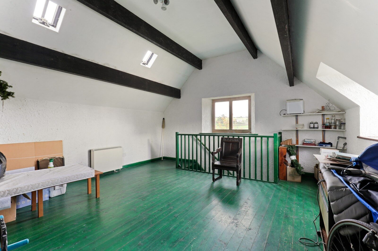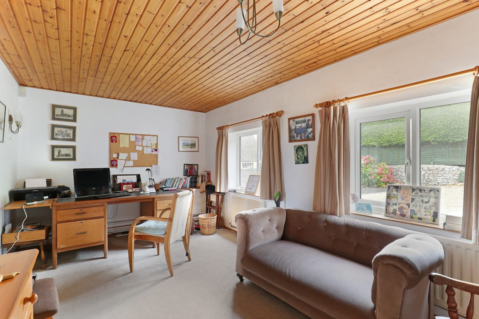 Vehicular and pedestrian access is gained through stone pillars and a cattle grid that leads onto the neighbour’s driveway. From here, double wooden five-bar gates open into a generous parking area with access to a detached stone-built garage, complete with power and an electric up-and-over door. To the side, a separate pedestrian entrance opens to a staircase leading up to a wonderful, vaulted room — ideal as a home office, studio, or teenage games room. Most of the grounds lie to the front and side of the house, where the views are open and far-reaching. Attractive boundary features include a traditional Cotswold stone wall, beech hedging, and timber fencing. The gardens comprise two main areas of lawn interspersed with a rockery, mature shrubs, and colourful planting. A paved patio provides a lovely spot for alfresco dining and enjoying the setting. The oil tank is discreetly positioned to the far side of the house near the garage. Although the plot is not extensive, it is extremely well-proportioned and perfectly complements the property, offering just the right balance of space, privacy, and easy maintenance.