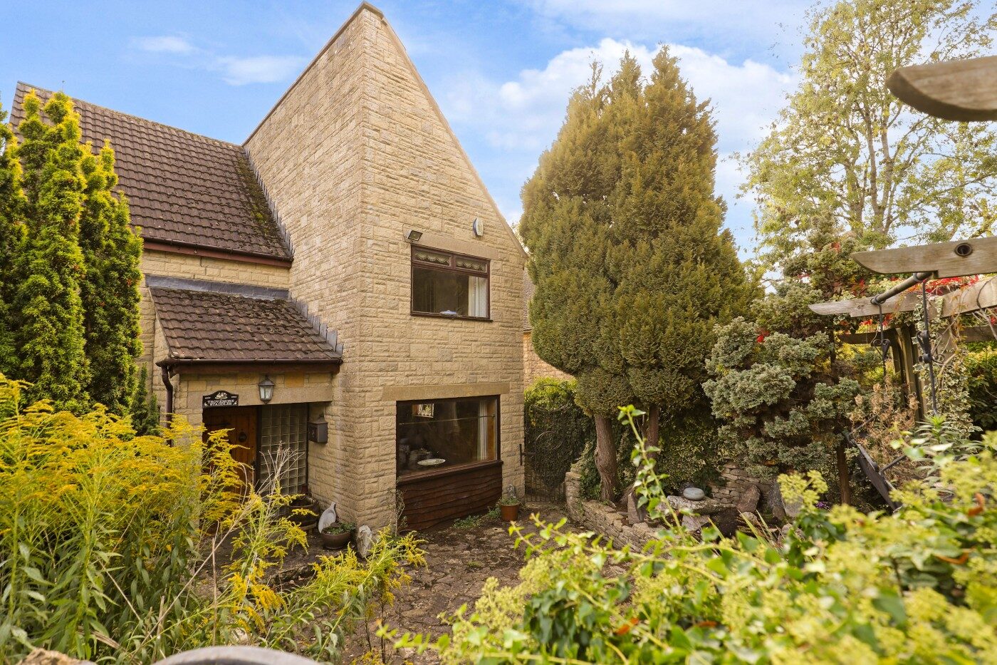 Located in an elevated setting on the ‘sunny side’ of the Golden Valley enjoying extensive valley views, lies this pretty Cotswold stone semi-detached cottage. The current owner has improved and extended this period property to enhance the accommodation by adding a contemporary element to this traditional home. With a sloping hillside plot extending to just under half an acre, made up of terraces including a sun terrace, patio, kitchen garden and woodland, much privacy can be enjoyed throughout. For those wildlife enthusiasts it’s a perfect place to watch nature or maybe you wish to live a more self-sufficient life by growing veg, fruit and embracing the honey made by the bees. From the centrally located front door, access into a light and open hallway is located with entry into a smaller inner hall where the staircase can found. To the right is a delightful sitting room with Karndean flooring and a wood burner opening directly into a sun room with glazed roof, and French doors with glazed side panels. The dining room benefits from an exposed Cotswold stone wall with fireplace, sash windows with shutters to front and a door leading to a back passage (no access). The attractive fitted kitchen enjoys a variety of cupboards, shelving and drawers in addition to a further door leading to the front. On the first floor the family bathroom and two bedrooms are located, one with the luxury of either a dressing room or home office and a store room. The top level houses two further double bedrooms both with superb views. This delightful residence offers so much. A great sized plot, superb views, good sized family accommodation and many characters features. Parking is found on a first come first served basis on a narrow lane up from the London Road.